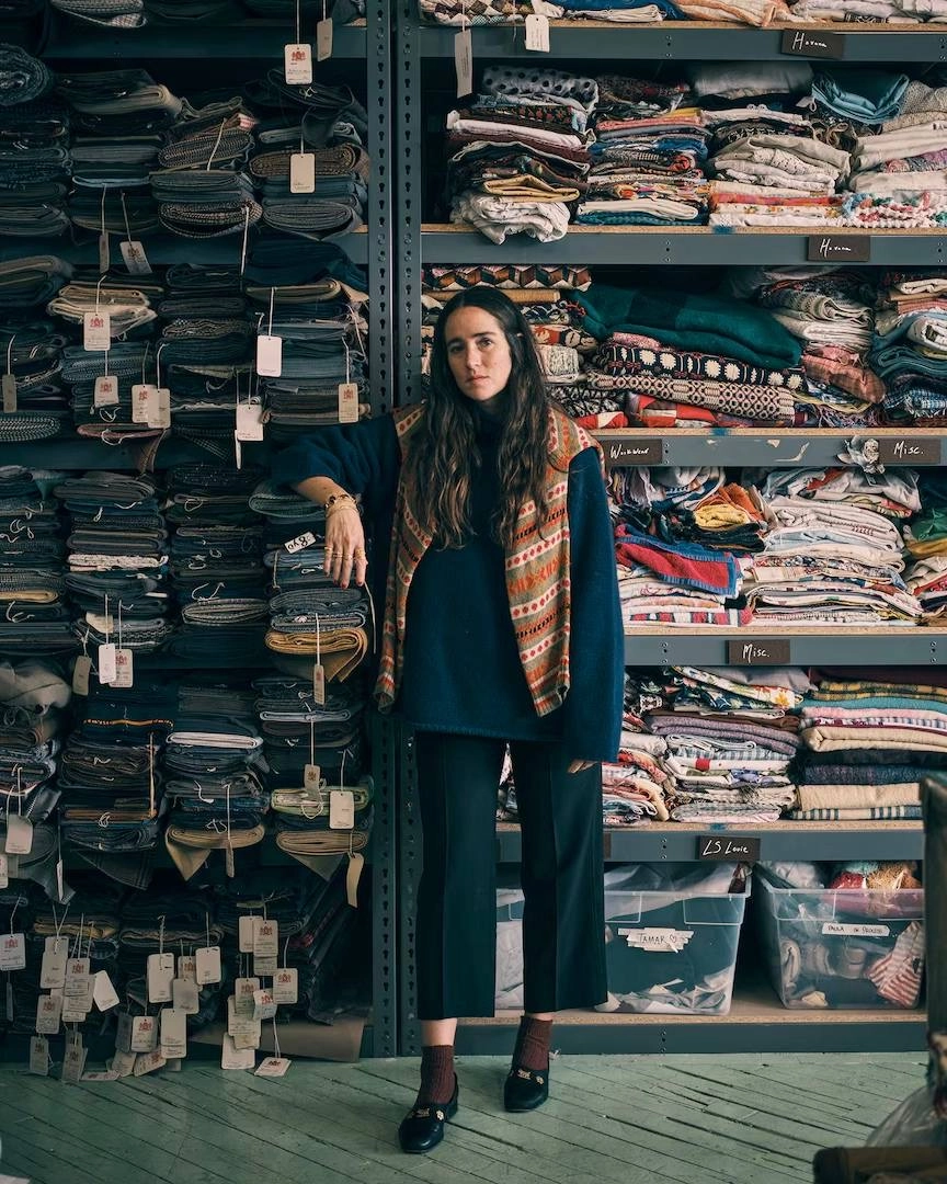 При этом Боде использует винтаж и для того, чтобы рассказать о своих воспоминаниях, поделиться историей своей дружбы или выразить собственную точку зрения. Возьмём её коллекцию 2019 года, созданную совместно с давним другом Аароном Аужлой. В мудборде той коллаборации были и архивные фотографии из семейного альбома Аарона, и ткани с традиционными орнаментами Индии, откуда Аужла родом. И этот проект оказался полезным для Эмили и с коммерческой точки зрения: выбирая индийский антиквариат, дизайнер познакомилась с представителями местной ткацкой мануфактуры, с которой сотрудничает по сей день.