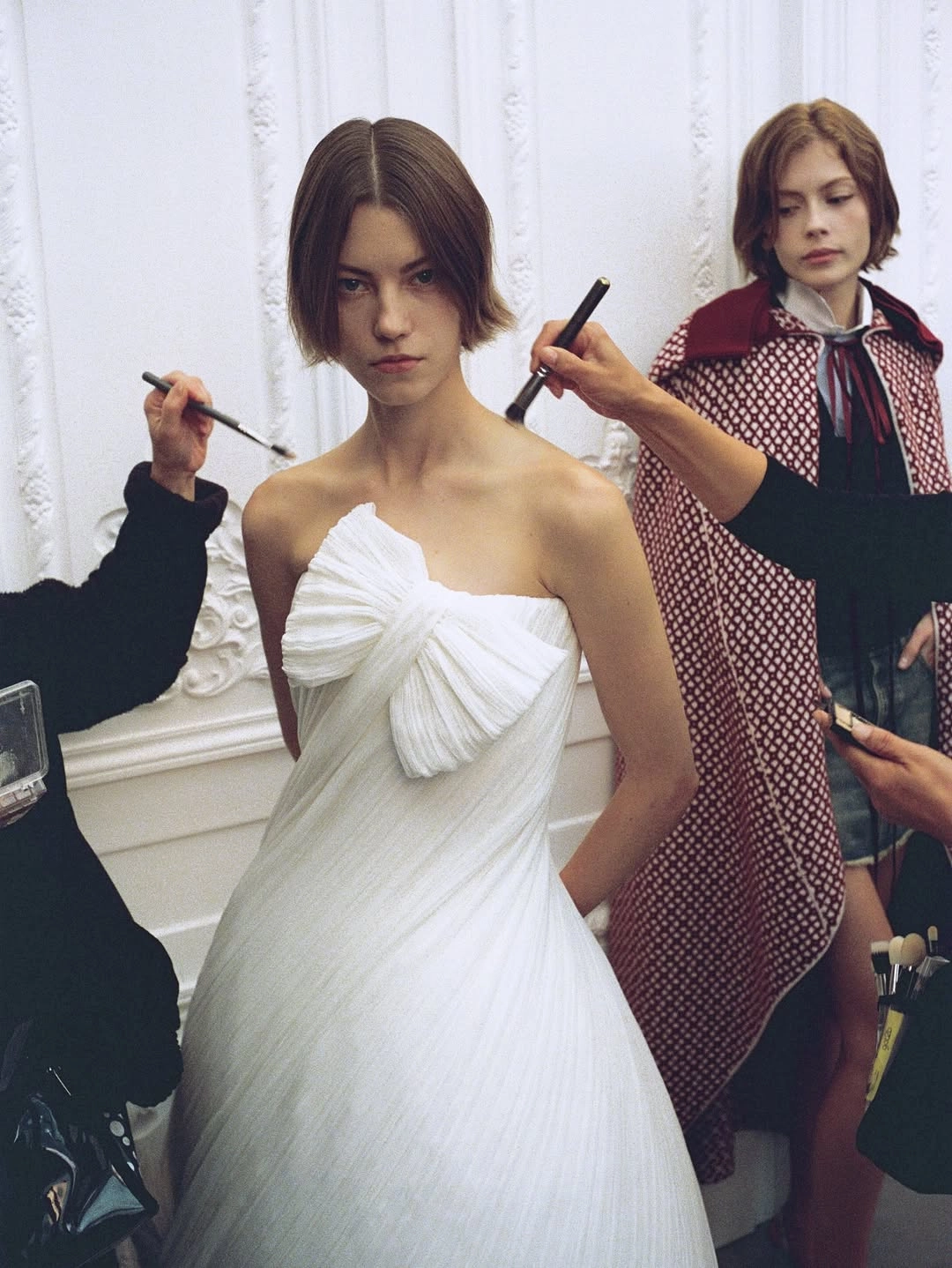Но 1 октября сомнения растворились: показ открылся ретроспективой дома – от Кристиана до Марии Грации, через призму Гальяно и Симонса. Новоиспечённый креативный директор обратился к наследию: укороченные бар-жакеты с баской, плиссе из ранних коллекций, туфли с розами, банты на корсетах, сумках и обуви. Как итог – слёзы Джонатана Андерсона на бэкстейдже.
